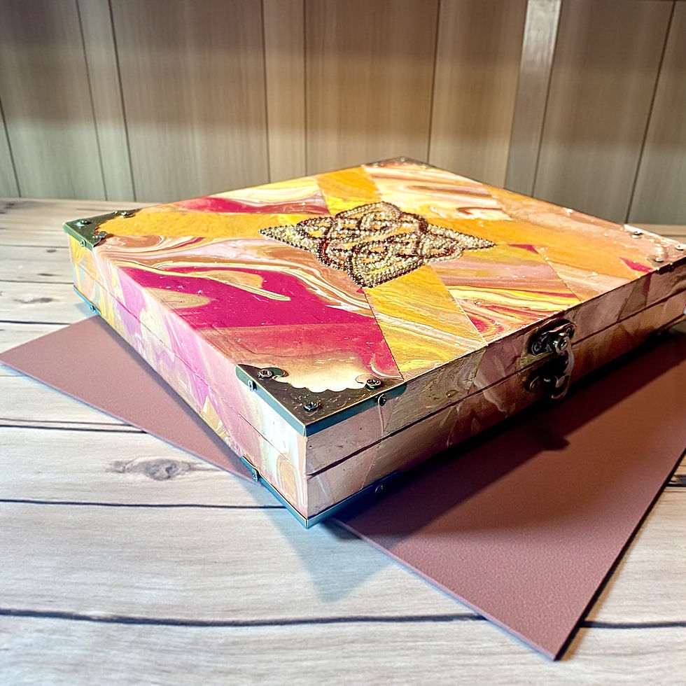 Vibrant Paint Pour Accessory Organizing Tray w/Celtic Knot Rhinestone Design
