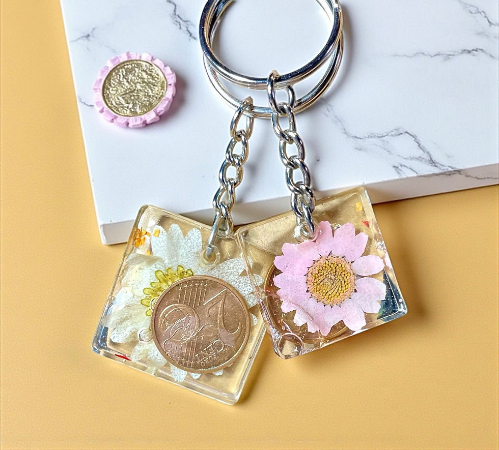 VIBRISH-Gold & Fuchsia Lego Heart & Clover BFF Keychain Set