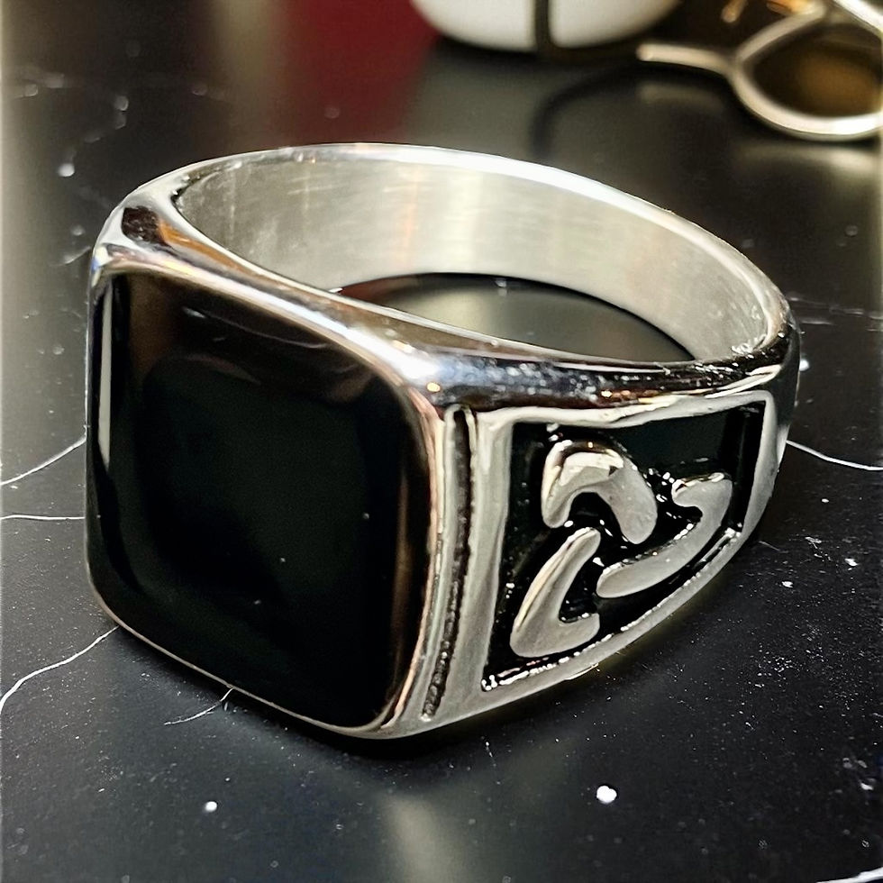 Silver & Large Faux Onyx Triquetra Detail Silver Band